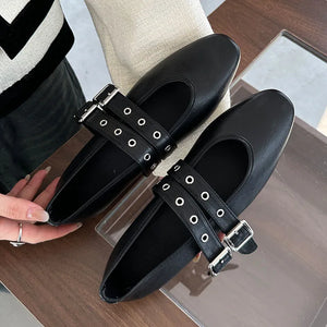 Female Buckle Strap Footwear Ballet Flats Fashion Women Dance Shoes Spring Round Toe Ladies Flats With Lolita Shoes