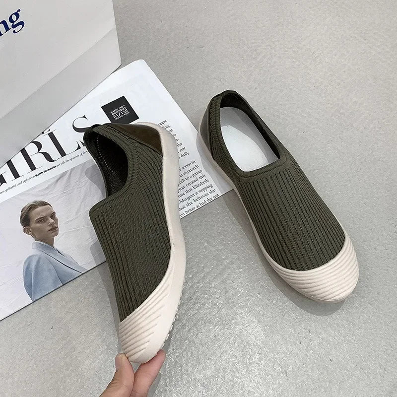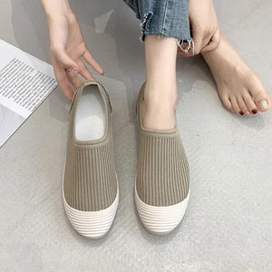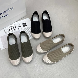 Flat Bottom Women Shoes Knitting Casual Flat Shoes Breathable Mesh Woman Designers Shoes Light Lady Ballets Flats Tenis De Mujer