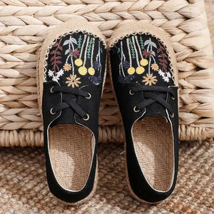 Flower Embroidered Women Handmade Linen Cotton Slip On Espadrilles Loafers Comfortable Sneakers Casual Walking Shoes 2024