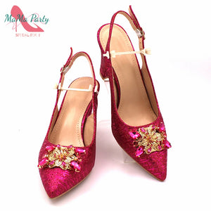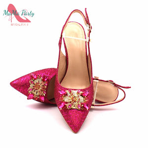 Fuchsia Color Italian Classics Design African Women Shoes and Bag Set High Quality with Shinning Crystal for Wedding Party
