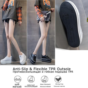 Fujin 10.5cm High Thick Heel Platform Flats Women Casual Shoes Genuine Leather Soft Quality Casual Shoe Sneakers White Black