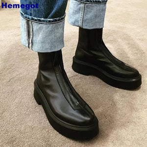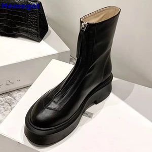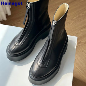 Genuine Leather British Style Short Boots 2024 Spring Outdoor Casual Office Round Toe Zip Thick Sole Boots Fashion Womens Boots