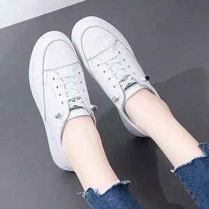 Genuine Leather Women Casual Sneakers Plus Size Spring Summer Skate Shoes Ladies Little White Vulcanized Shoes Woman