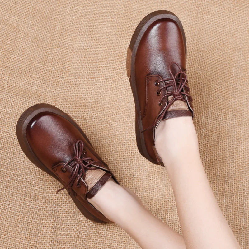 GKTINOO Sneakers Women Genuine Cow Leather Round Toe Lace-Up Ladies Retro Casual Flat Shoes Handmade Loafers