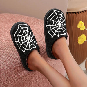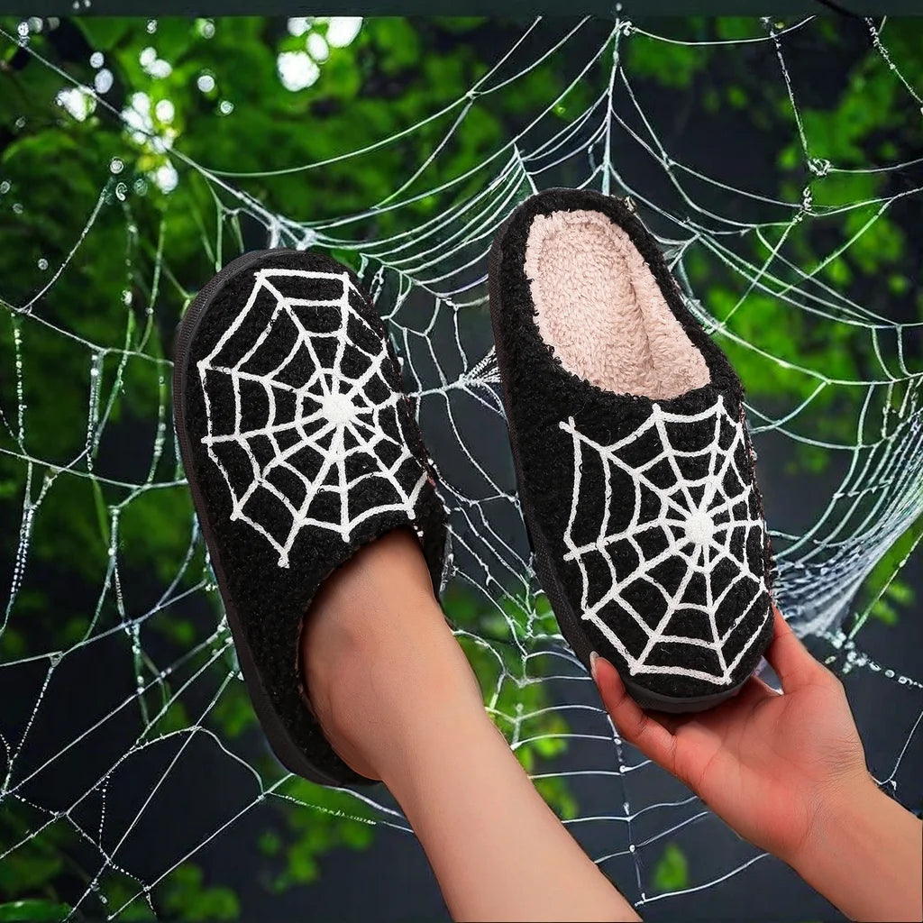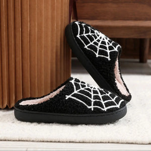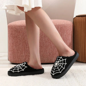 Halloween Spider Web Pattern Horror Pubon Atmosphere fashion Embroidery stuffed Home Thick-soled Cozy Furry Cotton Slippers Personality Warm Non-slip Indoor Slippers Men Women Can Wear Christmas Day Gift