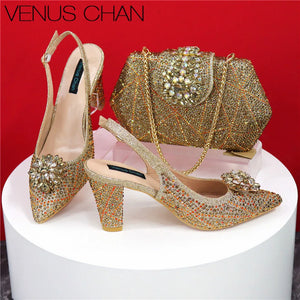 High Quality Designer Shoes and Bags Matching Set Decorate with Rhinestone Women Shoes High Heel Luxury Shoes Women Designer