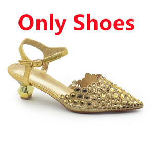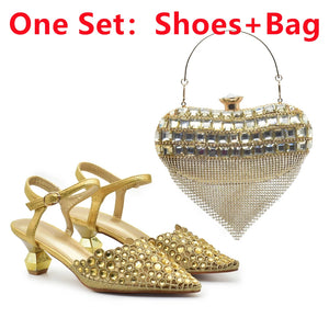 Italian Shoes and Bags Matching Set 2024 Rhinestones African Peep Toe Women High Heel Evening Party Pumps Wedding Shoes Bride