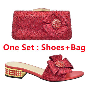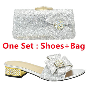 Italian Shoes and Bags Matching Set Decorated with Rhinestone Shoes for Women 2024 Designer Luxury Low Heels Slip On Party Pumps
