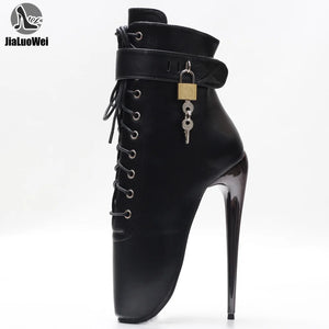JIALUOWEI New 7Inch Stiletto High Heel Lock Wrap Strap Ankle Length Fetish Ballet Boots In Stock Shipping Fast