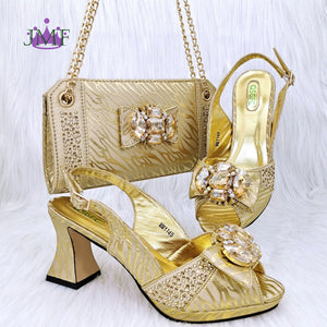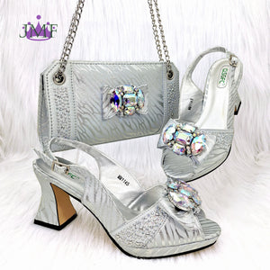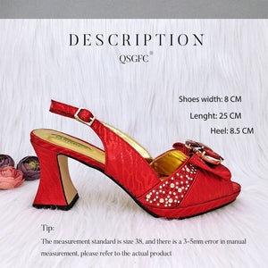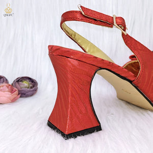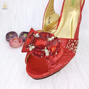 JMF Red Color Elegant lady Fashion Peep Toe Shoes Bride Comfortable Party Ladies Shoes and Bag Set for women