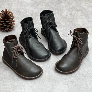 Johnature Retro Genuine Leather Short Boots 2025 New Casual Round Toe Versatile Solid Color Women's Soft Cowhide Soft Sole Shoes