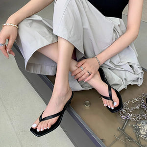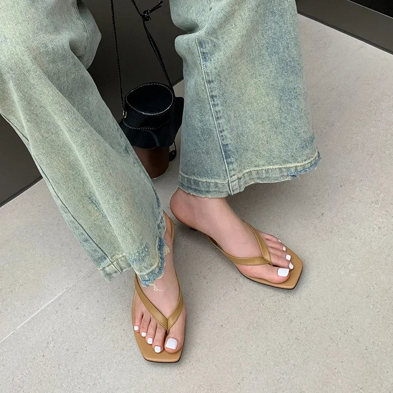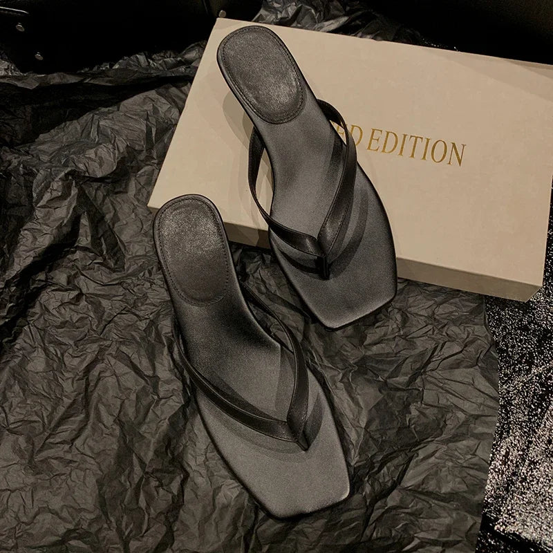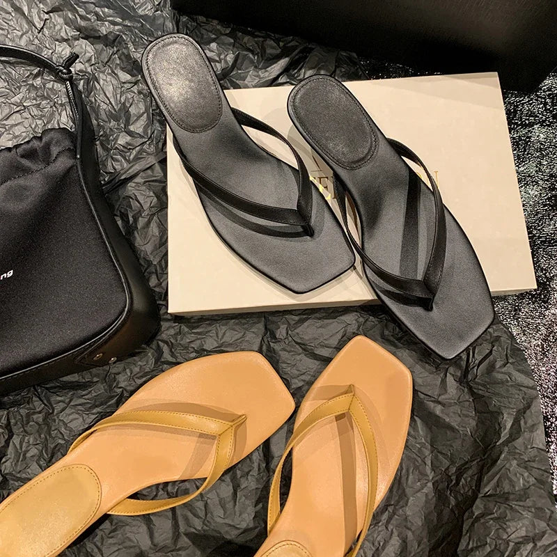 JOZHAMTA Size 34-42 Women Mule Sandals Real Leather Flip Flops Kitten High Heels Summer Shoes Casual Beach Home Slides Slippers