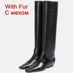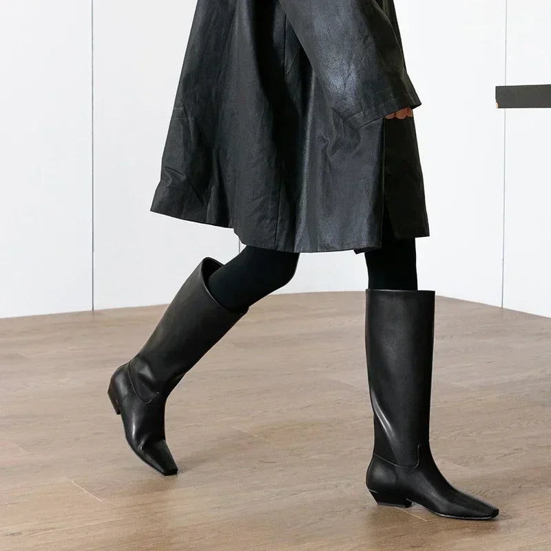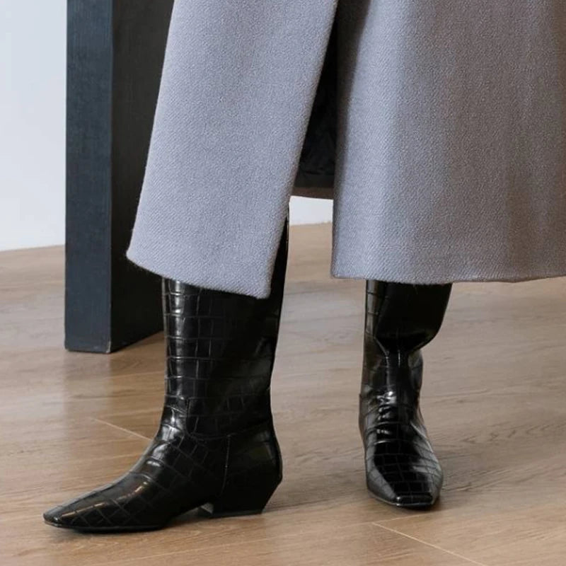 JOZHAMTA Size 35-43 Women Knee Boots 2025 Ins Fashion Stone Pattern Soft Leather Thick Heels Shoes Fall Winter Long Tall Boots