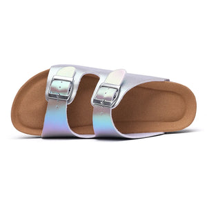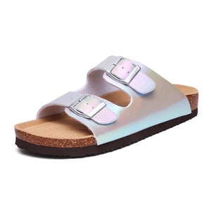 Kidmi Women Clogs Slippers Summer Clogs Flat Sandals Cork Mules Beach Slides With Double Buckle 2024 Outdoor Women Flat Sandals