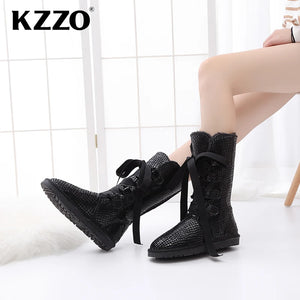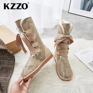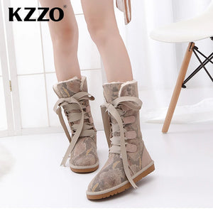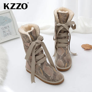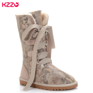 KZZO Top Quality Natural Wool Lined 100% Genuine Leather Winter Snow Boots For Women Casual Knee-high Boots Warm Shoes Non-slip