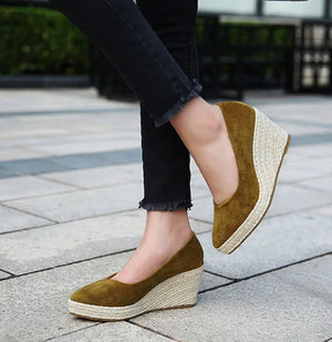 Suede women wedge shoes pointed toe pumps high heels platform lady pumps party espadrilles shoes singback princess same