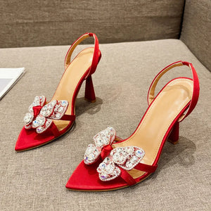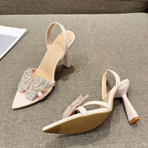 Liyke Size 35-41 Sexy Slingback Sandals Women Back Strap High Heels Summer Fashion Crystal Diamond Pointed Toe Wedding Prom Shoe