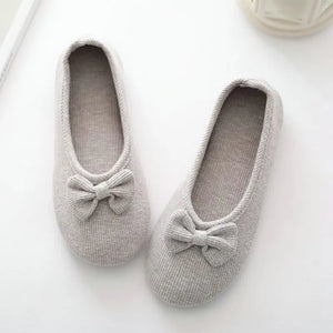 Lovely Bowtie Autumn Women Home Slippers For Indoor Bedroom Soft Bottom Cotton Warm Shoes Adult Guests Flats Non-Sip Girl Shoes