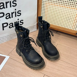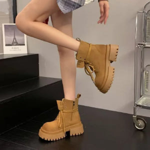 Med Heel Boots Women's Rubber Shoes Rain Flock PU Sewing Hoof Women's Rubber Boots Rain Med PU Flock Sewing Hoof