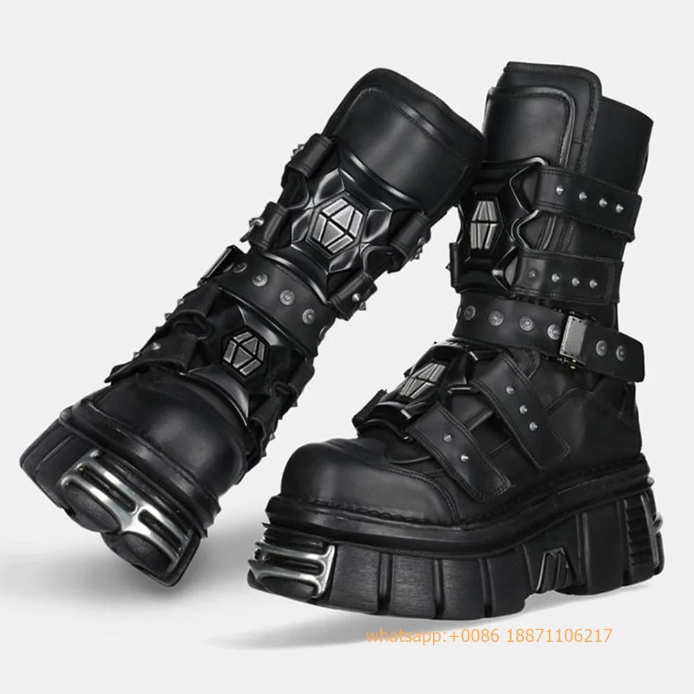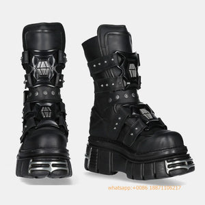 Metal Rivet Punk Party Gothic Boots 2025 New Thick-Soled Street Rock Men's and Women's Motorcycle Boot 35-45 Sports Casual Shoes