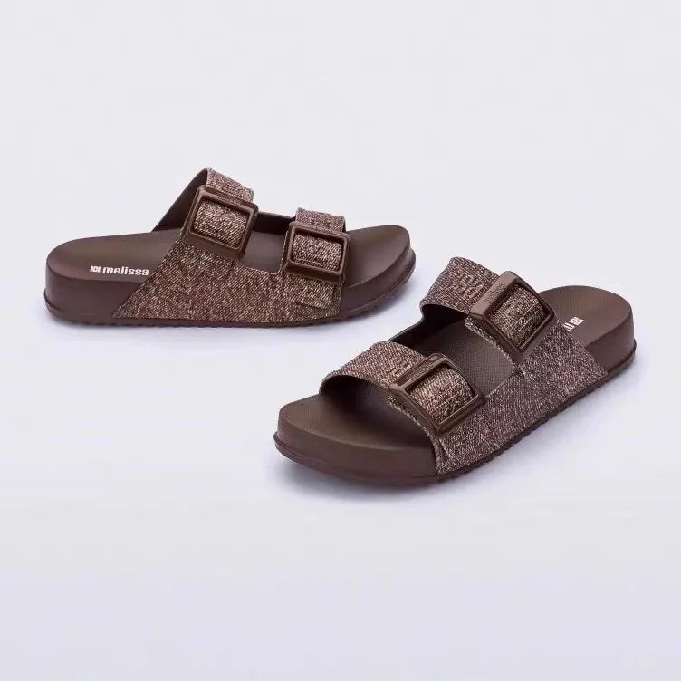 Mini Melissa Adult Outerwear Casual sandals ladies Fashion Versatile Double Button beach shoes Thick Bottom Slippers for Women