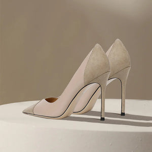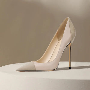 Naked high heels for women new models for socialites color blocked French style queen pointed single shoes for women, slim heels