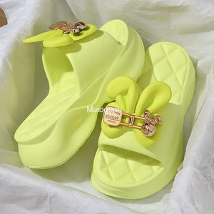 New Fashion Bowknot Women's Slippers Summer Women Slippers Indoor Outdoor Green Flip Flops Beach Shoe Home Non-slip EVA Slippers