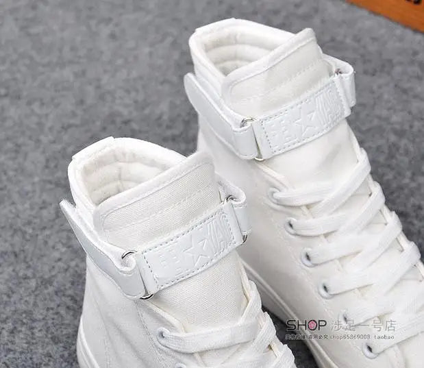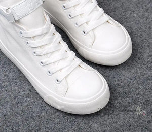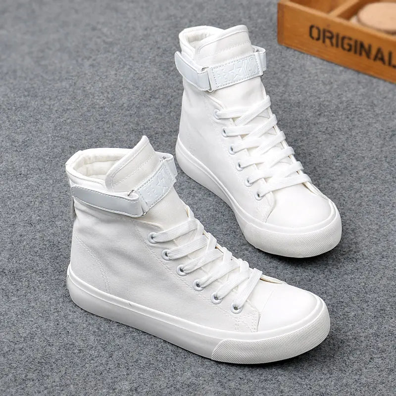New Fashion High Top Sneakers Canvas Shoes Women Casual Shoes White Flat Female Basket Lace Up Solid Trainers Chaussure Femme