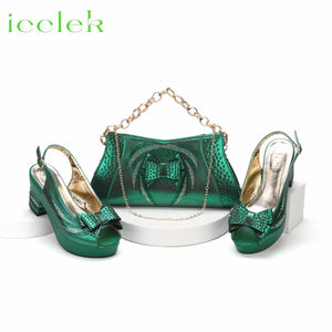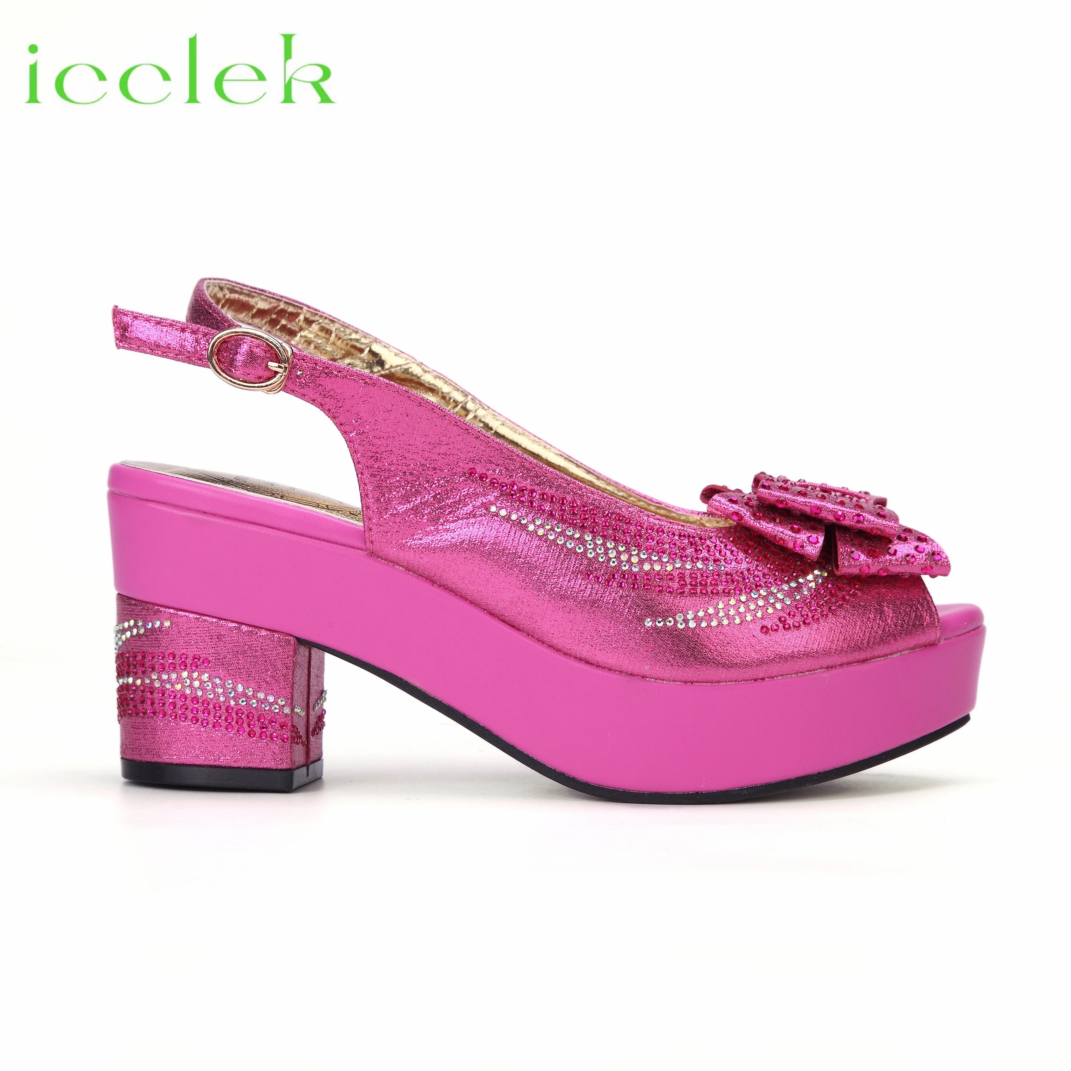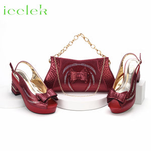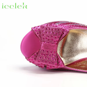 New Fashionable Fuchsia Color Peep Toe Ladies Shoes Matching Bag Set For Nigerian Women Wedding Party Pump