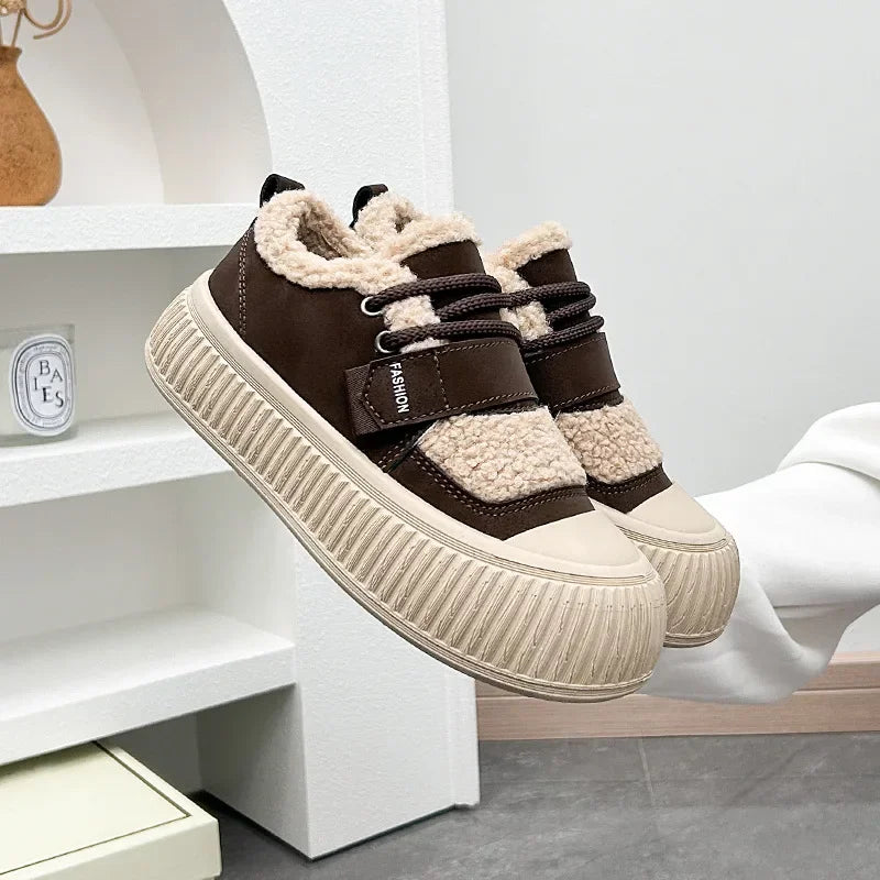 New Winter Warm Cotton Shoes Ladies Plush Fur Thick Sole Lace Up Casual Sneakers Women Outside Flat Comfortable Running Shoes