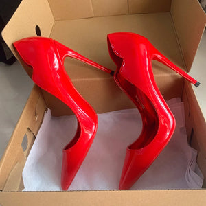 Newly Women Sexy Elegant Pumps Stilettos Glossy Patent Side V Cut High Heels Pointed Toe Party Curl Cut Celebrity Shoes Size46