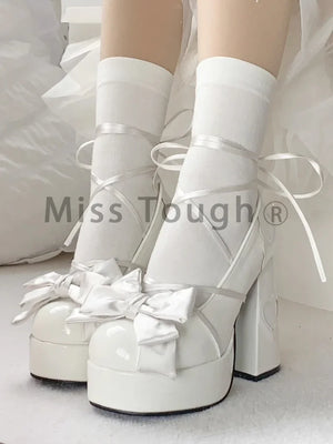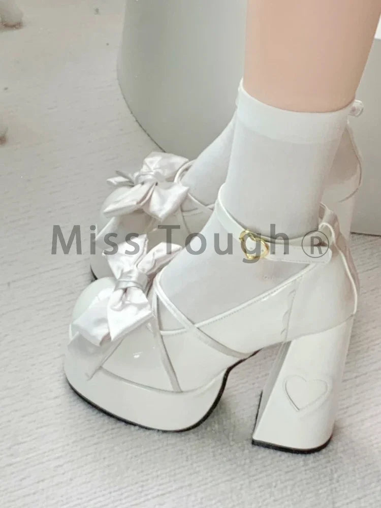 Pink Sweet Lolita Mary Janes Shoes Women Japanese Princess Kawaii High Heels Shoes Female Bow French Vintage Platform Shoes 2024