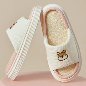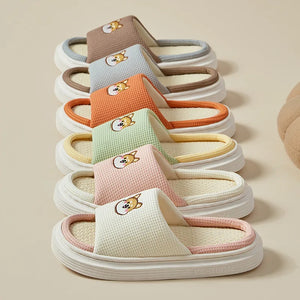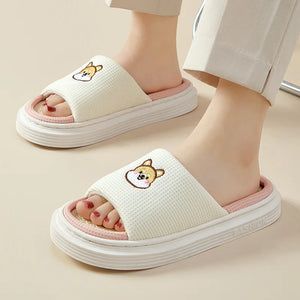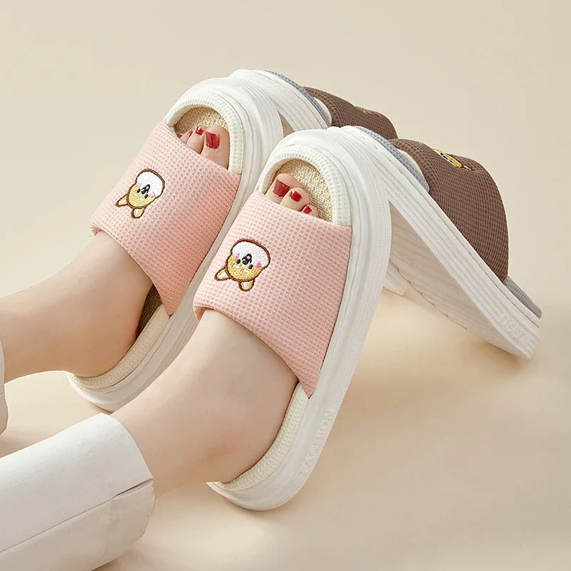 Platform Slippers Women Home Cartoon Animals Cute Designer Shoes Girls 2024 New Casual House Linen Slides Flats Indoor Open Toe