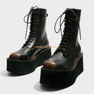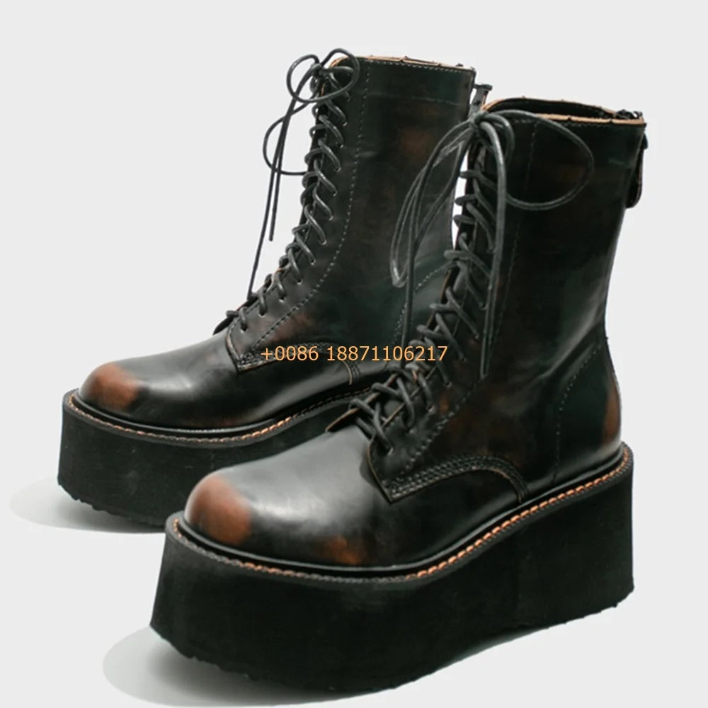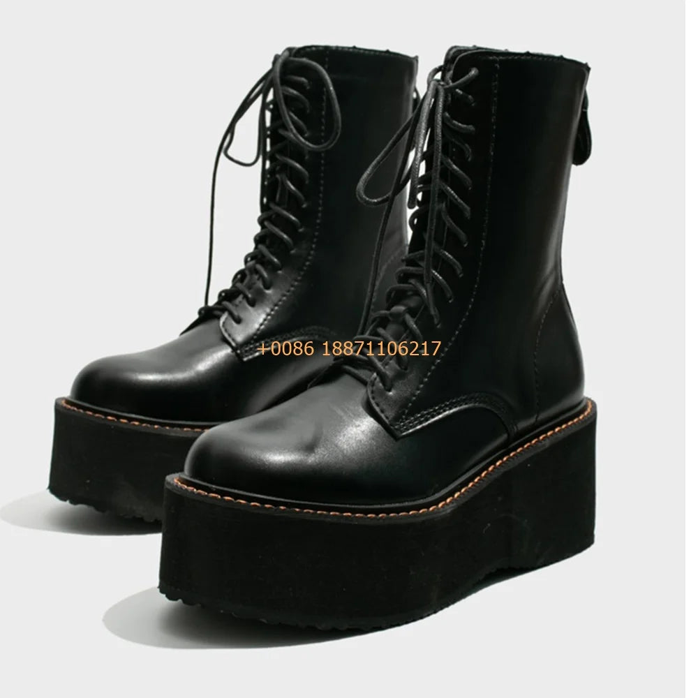 Platform Women's Motorcycle Boots 2024 Autumn New Round Lace-Up Sports Casual Short Boot Fashion Street Style Party Knight Boot