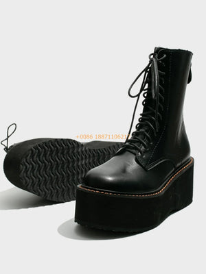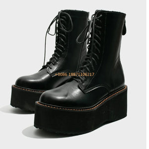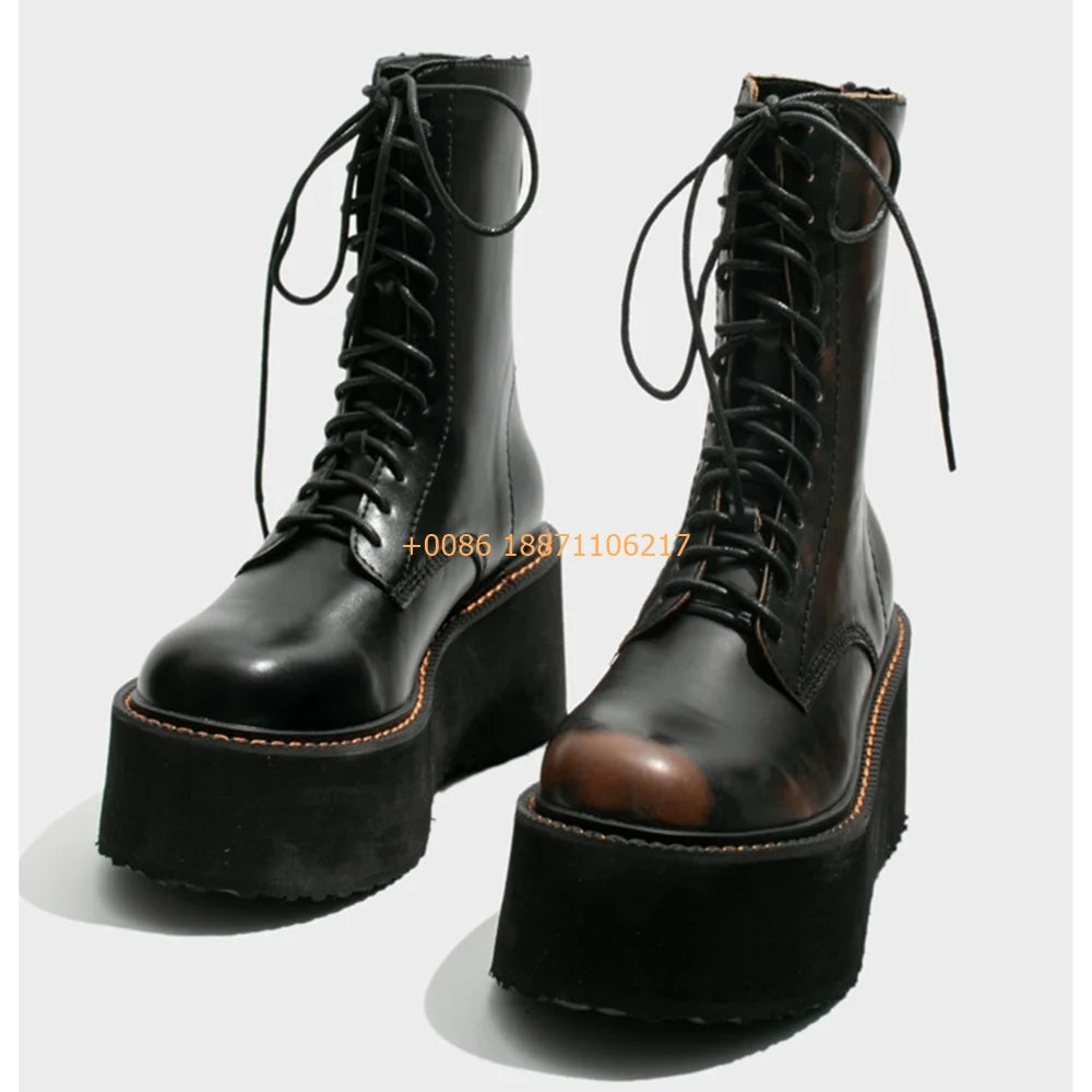 Product Name:Platform Women's Motorcycle Boots 2024 Autumn New Round Lace-Up Sports Casual Short Boot Fashion Street Style Party Knight Boot