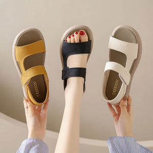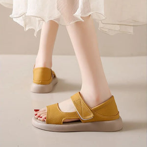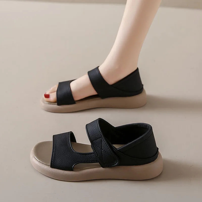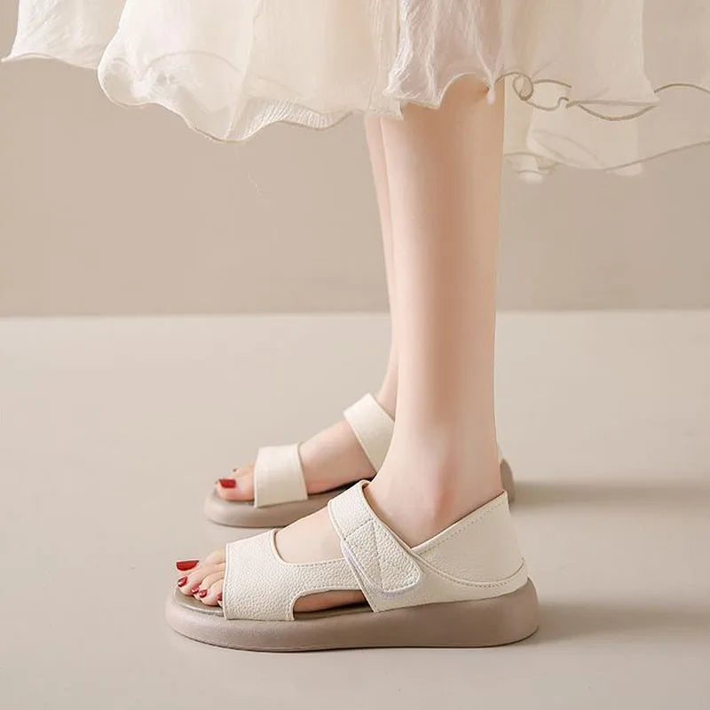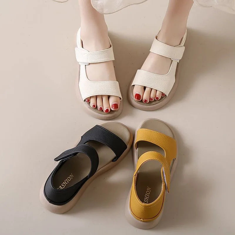 Plus Size Women's Sandals Summer Luxury Soft Leather Sandals New Design Slides Shoes Slippers HOOk&LOOP Casual Platform Sandals
