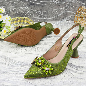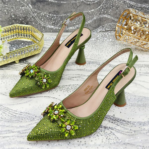 Popularity Pointed Toe High Heels Shoes and Bags Set With Rhinestone for Women Wedding Party Elegant Luxury Fashion