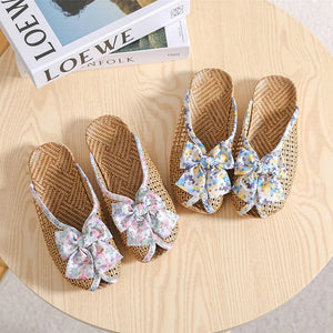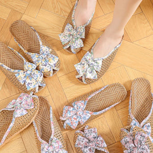 Rattan Grass Woven Slippers For Home Summer Men And Women Home Couples Linen Slippers Indoor Non-Slip Floor