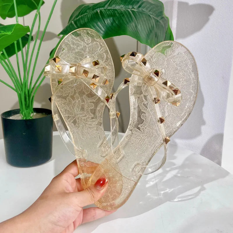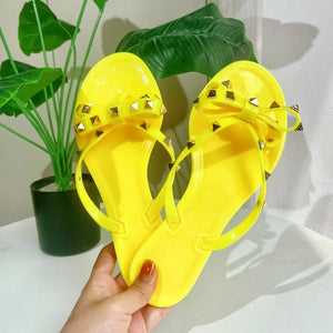 Riveted Flip Flops Women Sandals Summer Jelly Shoes Women's Flat Bottomed Slippers Summer Casual Rivet Slippers Outside 36-42
