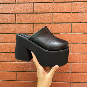Sandals Summer 2025 New Women Slippers Baotou Platform Trend High Heels Ladies Shoes Pumps Black Soft Leather Thick Slides Mujer