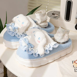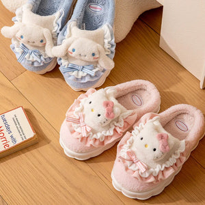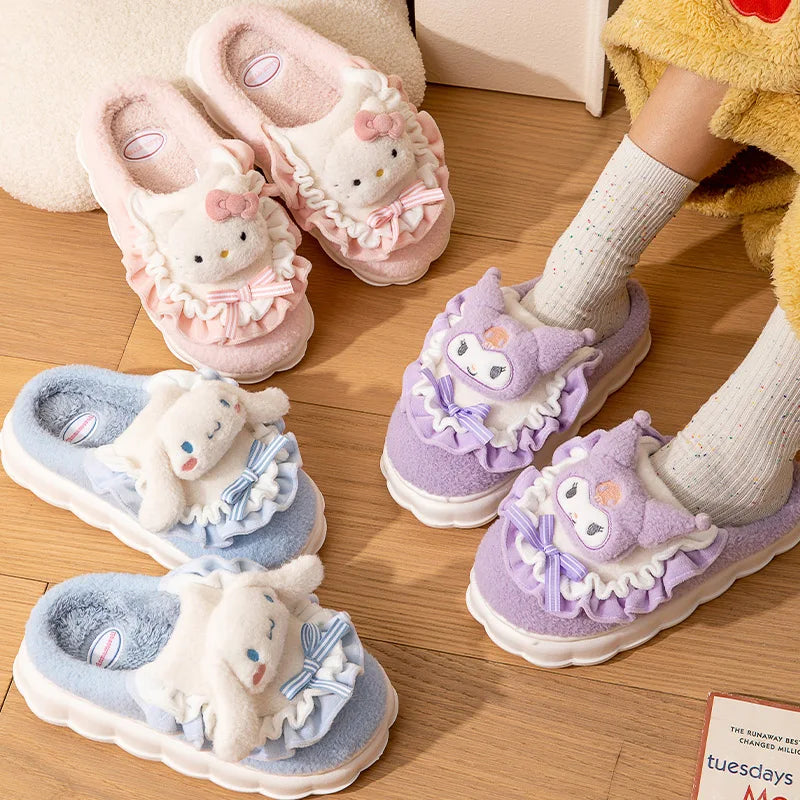 Sanrio Kawaii Cinnamoroll Womens Slippers Kuromi Hello Kitty Plush Cartoon Cute Sweet Suitable Indoor Outdoor Winter Shoes