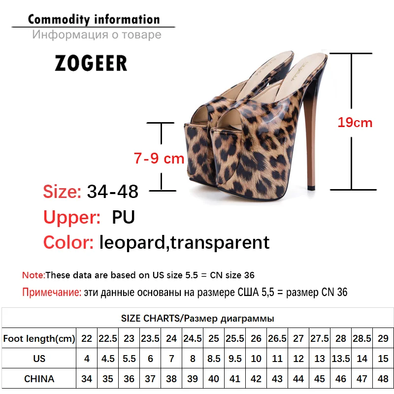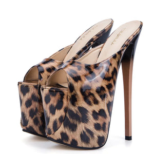 Sexy Leopard Slippers Women 19cm Extreme High Heels Sandals Luxury Platform Summer Mules Fetish Party Shoes Ladies Large Size 48
