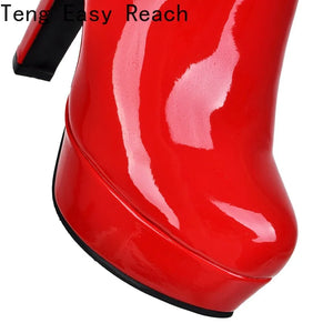 Sexy Over The Knee Boots Women Platform Fashion High Heels Thigh High Boots Patent Leather Women's Winter High Boots Shoes Red