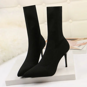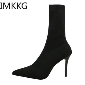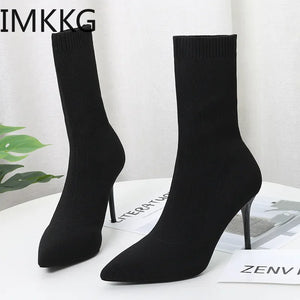 Sexy Sock Boots Knitting Stretch Boots High Heels for Women Fashion Shoes 2024 Spring Autumn Ankle Boots Female Size 42