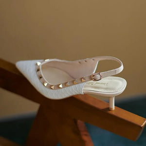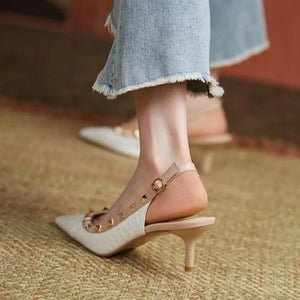Sexy Women Sandals Rivets Pointed Toe Slingbacks Patent Leather Mid Heels Pumps Snakeskin Pattern Sandalias scarpins feminino