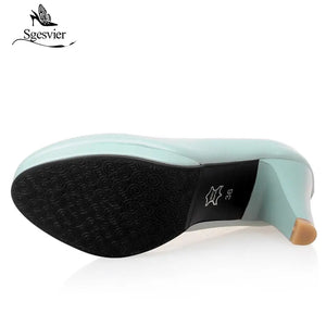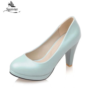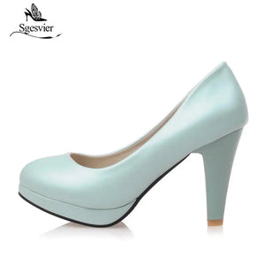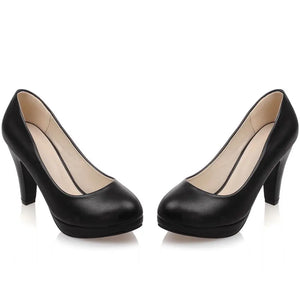 Sgesvier Black White Women Pumps High Heels Shoes Thick Heel Round Toe Pumps Size 32-48 Summer Autumn Fashion Shoes Ladies B207