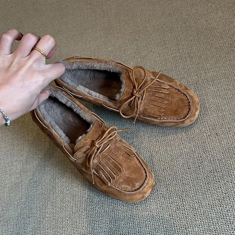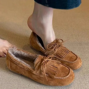 Shoes for Women 2024 Hot Sale Warm Women's Flats Daily Casual Flats Women Bow Tie Fringe Round Toe Soft Bottom Shoes Ladies