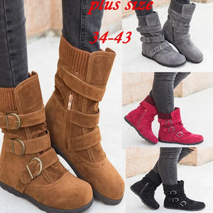 Shoes for Women Warm Snow Boots Flat Plush Casual Ladies Shoes Autumn Buckle Female Mid-calf Boots Plus Size 35-43 Boots Women
