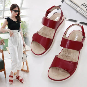 SIKETU Brand Summer Fashion Women Flat Heel Classic Sandals Buckle Hook Loop Simple Wedge Shoes Mid Heel Soft Comfort Footbed 41