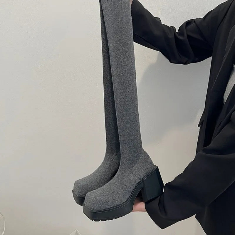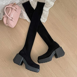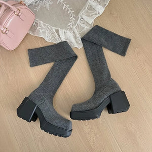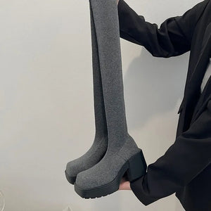 Size 35-40 Winter Women's Over The Knee Sock Boots Stretch Knitted Thick Heels Long Boots Woman Slip On Platform Shoes